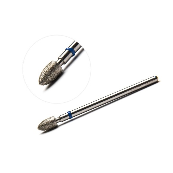 Обтекаемая форма фрезы помогает мастеру проводить аккуратную работу с боковыми валиками. Напыление из алмазной крошки позволяет безопасно избавиться от огрубевшей кожи, придавая ей идеально гладкий вид.